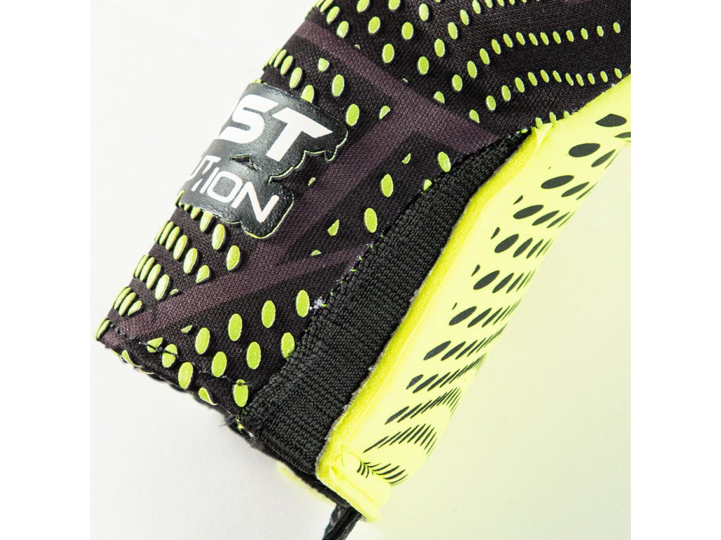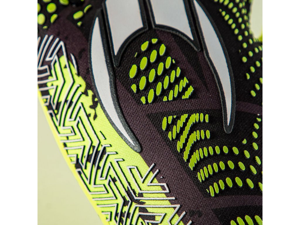 STŘIH: Negativní, s novou ergonomickou konstrukcí rukavice a omotáním přes palec. Dlaň sahá také k zápěstí a poskytuje tak větší kontaktní plochu s míčem.